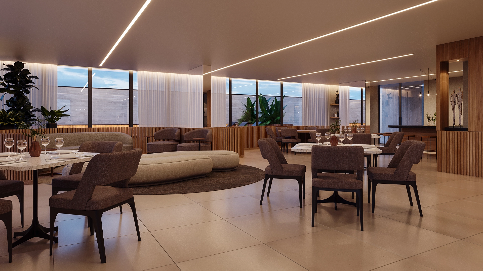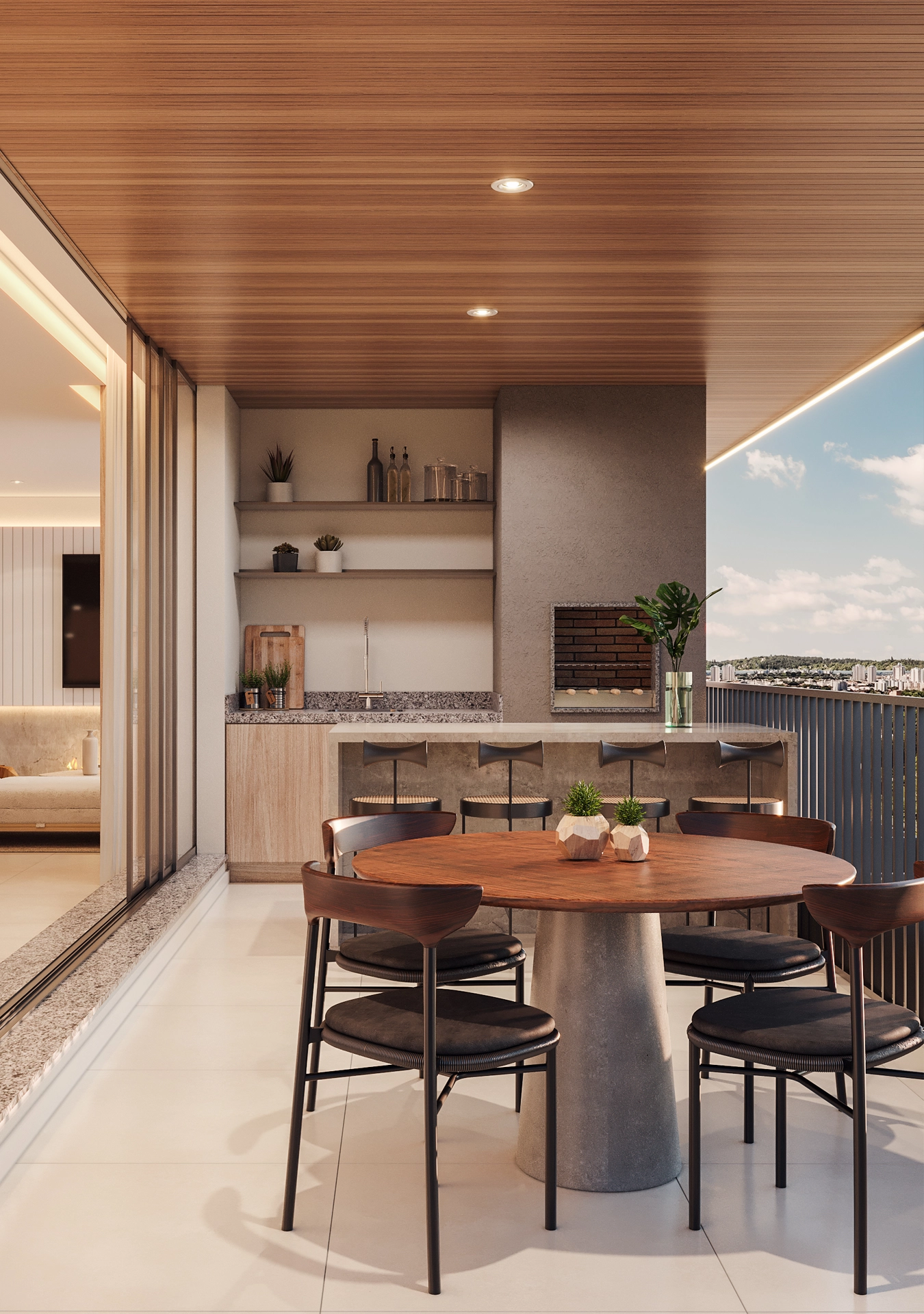 Ele conta com um amplo espaço social, ideal para receber amigos e familiares e viver momentos de lazer, convivência e celebração — tudo isso sem sair de casa.